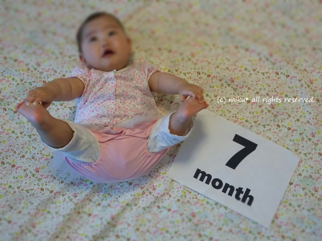 6ヶ月までの成長は、身体能力が主だったのが、7ヶ月は違う感じです。